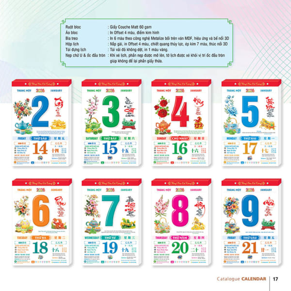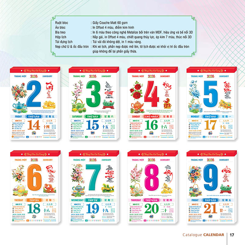Lịch Bloc là sản phẩm được in ấn với 365 tờ tương ứng với 365 ngày trong năm. Mỗi trang Lịch không chỉ đơn thuần xem ngày, giờ mà còn là một bức tranh trang trí vô cùng đẹp mắt và sang trọng trong ngôi nhà của bạn. Đặc biệt là phương tiện quảng cáo Công Ty, Doanh Nghiệp, Sản Phẩm của bạn đi nhiều nơi, đến với nhiều người mà không sản phẩm nào thay thế được.