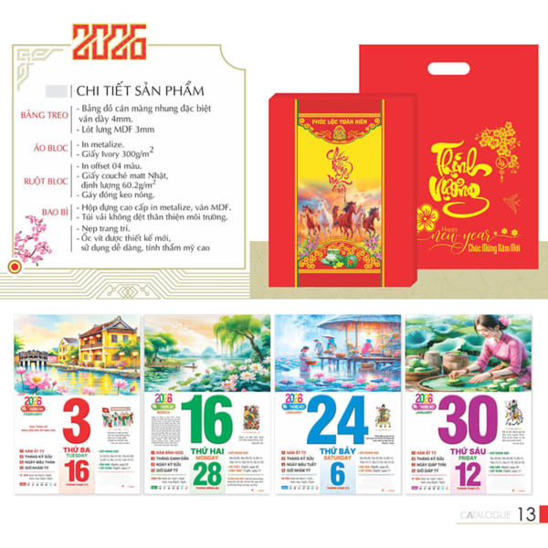 Lịch Bloc là sản phẩm được in ấn với 365 tờ tương ứng với 365 ngày trong năm. Mỗi trang Lịch không chỉ đơn thuần xem ngày, giờ mà còn là một bức tranh trang trí vô cùng đẹp mắt và sang trọng trong ngôi nhà của bạn. Đặc biệt là phương tiện quảng cáo Công Ty, Doanh Nghiệp, Sản Phẩm của bạn đi nhiều nơi, đến với nhiều người mà không sản phẩm nào thay thế được.