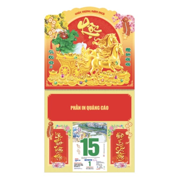 Lịch lò xo giữa là loại lịch treo tường có 2 phần được nối với nhau bằng lò xo cuộn. Phần phía trên được trang trí sặc sỡ, đẹp mắt và phần phía dưới được thiết kế ngày tháng trong năm. Bìa lịch lò xo giữa gắn bloc 37x70cm có thể gắn với bloc lịch đại(14.5×20.5cm), bloc đại lỡ (12x18cm), bloc trung màu (10.5×14.5cm).