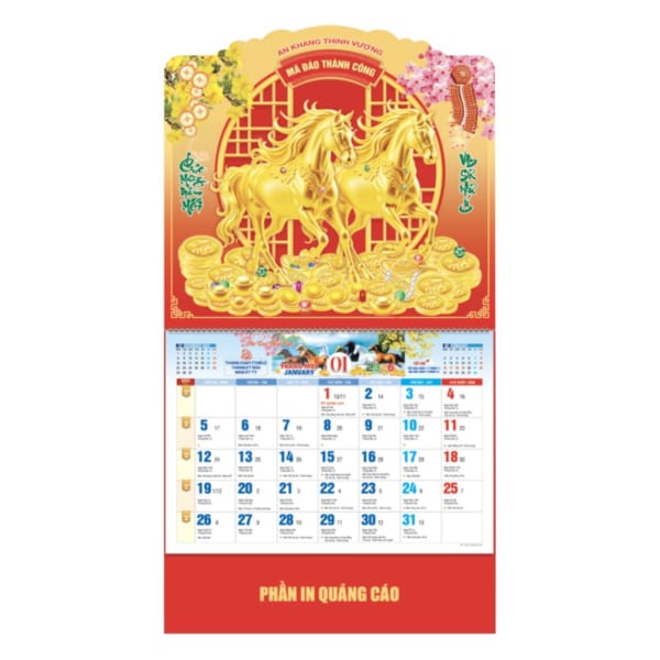 Lịch lò xo giữa gắn bộ số là sản phẩm được thiết kế 12 tờ lịch tương ứng với 12 tháng trong năm. Trên mỗi tờ lịch cung cấp đầy đủ các thông tin thời gian ngày tháng năm dương lịch và âm lịch. Kích thước: 37cm x 68cm là kích thước khá lớn nên mẫu lịch phù hợp để treo trong những không gian rộng như phòng khách, phòng làm việc…